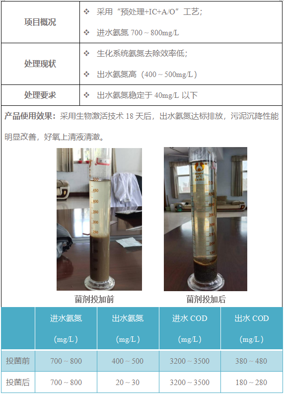 2.快速启动污水硝化系统,3天见效,15天内实现出水氨氮达标排放;