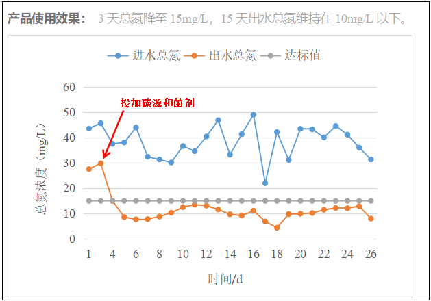 针对性的接种总氮强效菌种—迈葳®总氮激活菌101,改善菌群结构,快速实现总氮降解目的。总氮去除率高达99%。